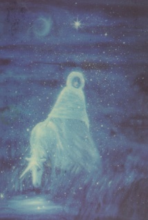 The midnight, bluey sky looked down, star lit, moon lit, too!